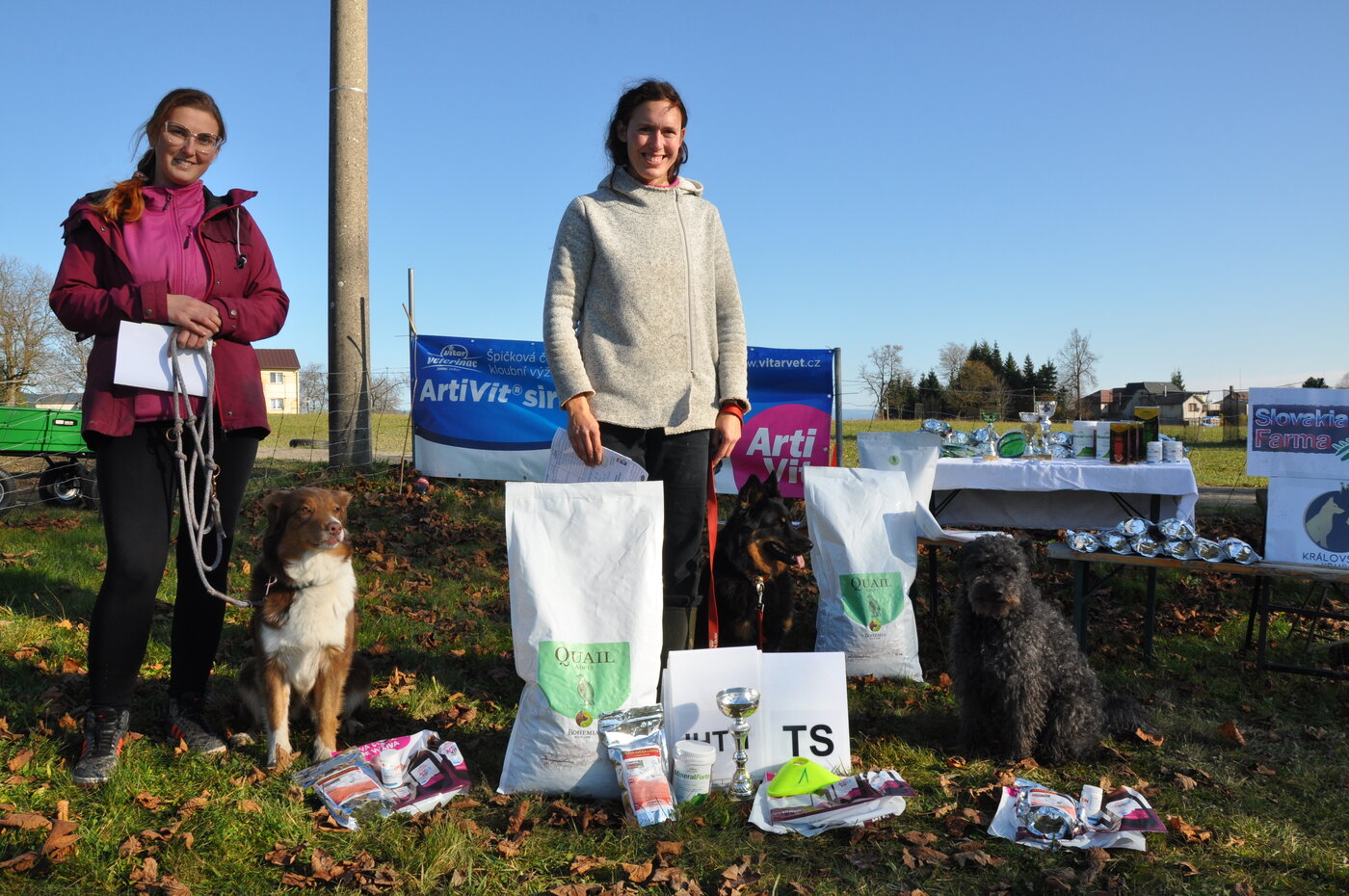 A v poslední řadě obří díky všem sponzorům za úžasné ceny. a to jmenovitě společnosti VITAR Veterinae za doplňky pro naše psí miláčky, které dostal spolu se skládací miskou každý. Dále společnosti Slovakia Farma za půl kilový balíček granulí pro každého účastníka. A Bohemia Pet Food s.r.o. za pytle granulí pro vítěze v kategoriích IHT.