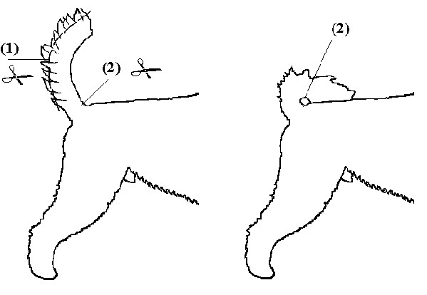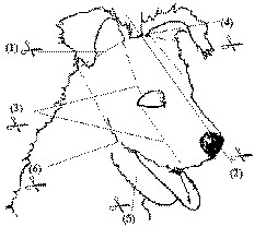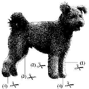 When your Pumi is dry, use scissors and trim the body, head, neck, buttocks, forechest, and legs, according to the diagram (from the Hungarian Puli-Pumi-Mudi Club).