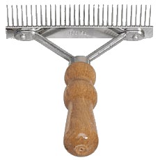 The other grooming instrument you need is the stripper. This pulls out some hair (it doesn't hurt), and helps the hair stay coarser, and thus does not mat as easily. You can get the stripper at this link: http://www.petedge.com/Mars-Coat-King-Strippers-ZC515.pro. You need to order a size 10. You should start using this to thin their hair all over their body, but you don't need to use it on their head, legs, or tail.