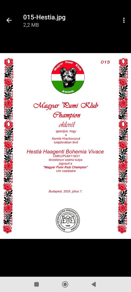 Úplně jsem zapomněla, že Hes získala klubového pumi šampiona krásy v Maďarsku !
